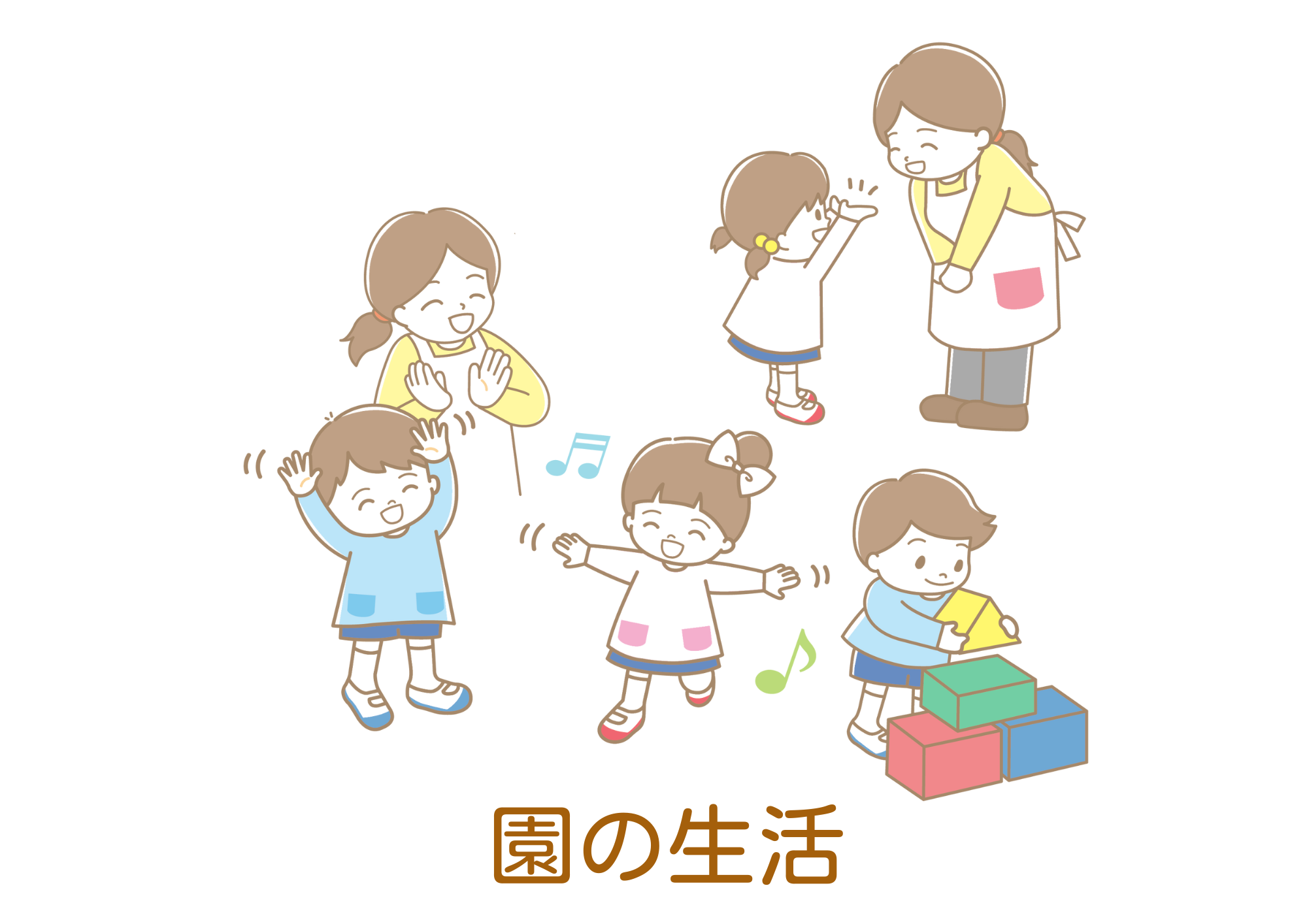 園の生活 2024.11.212024.12.17 園の生活 一日の流れ 7:00~9:15登園・室内遊び9:15~朝の会・おやつ9:50~設定活動(お散歩や戸外遊び、製作など)11:00~給食 12:00~お昼寝15:00~おやつ15:20~帰りの会15:30~18:00午後の設定活動(お散歩や戸外遊び、室内遊びなど)・降園 習い事 週一度、ヤマハ音楽教室の先生をお呼びしてリトミック(音楽活動)を行っています。 毎週金曜日9:40~10:00(0・1歳児)、10:00~10:30(2歳児)に行っています。 歌やリズム、手遊び、楽器の演奏を行っています。 系列のこぐま保育園(定員60名)の年中クラスからはピアニカ、年長クラスでは音楽ワークなども行っています。 保育理念施設情報・アクセス